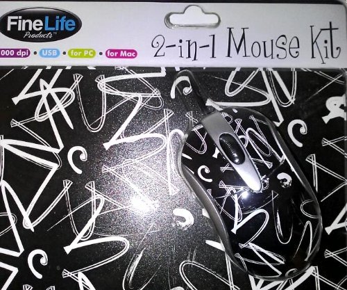 This stylish mouse and mouse pad kit has a stylish abstract art look that will definitely stand out and get attention. A great functional change of pace from the same old drab grey or beige mouse that we all have grown accustomed to. Mouse features 1000 dpi, USB Port, scroll wheel to help speed search documents and web and comfortable ergonomic design. Mouse pad is 8.3 inches by 7 inches. Mouse is compatible with PC and Mac.