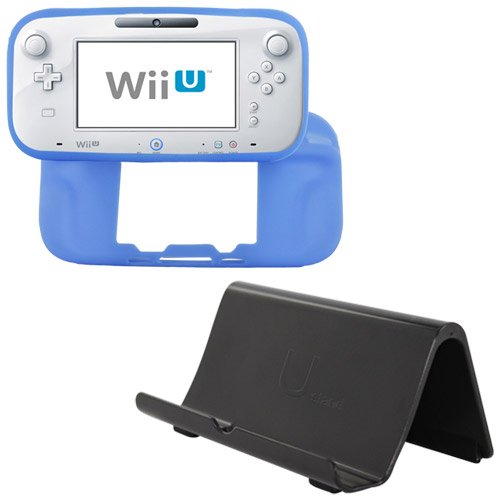 Review Skque® Black Durable Gamepad Console Vertical Stand Dock + Blue Soft Silicone Skin Back Case Cover(for Nintendo Wii U Gamepad Remote Controller) for Nintendo Wii U
