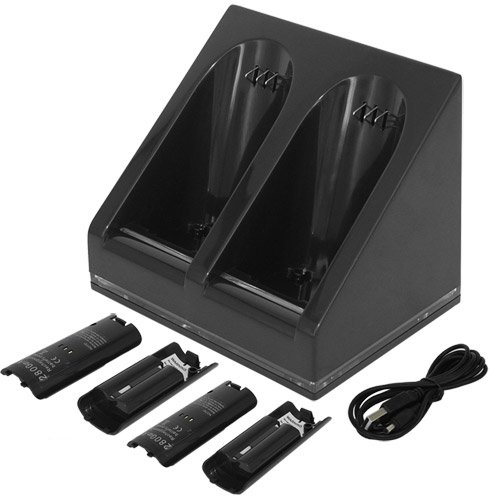 Buy Skque USB Powered Dual Charging Station Dock Stand and 4 Batteries for Nintendo Wii, Black