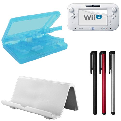Product Description : Skque® White Durable Gamepad Console Vertical Stand Dock + Ultra-clear Anti Scratch Screen Protector Guard + 3 Pack of Touch Screen Stylus Pen(black,red,silver) + 28 in 1 Game Card Holder Case,Aqua for Nintendo Wii U